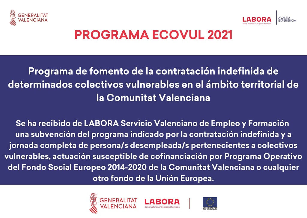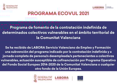 Programa: ECOVUL 2021- Programa de subvenciones destinadas a fomentar la contratación indefinida inicial de colectivos vulnerables