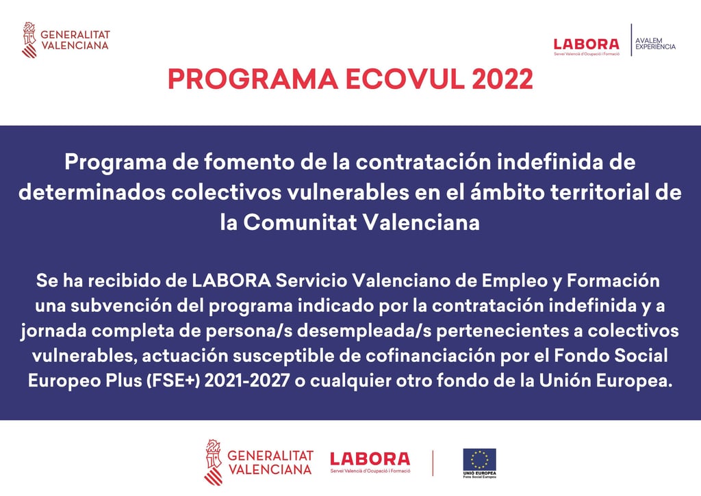 Programa: ECOVUL 2022- Programa de subvenciones destinadas a fomentar la contratación indefinida inicial de colectivos vulnerables