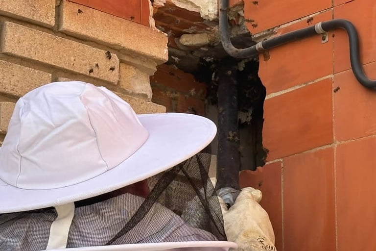 “Si ves abejas entrando y saliendo de un agujero en la pared, probablemente hay una colmena instalada. En NC Plagas ofrecemos retirada profesional de colmenas en muros y edificios, incluyendo extracción completa y limpieza para evitar reapariciones. Servicio seguro, legal y eficaz.”